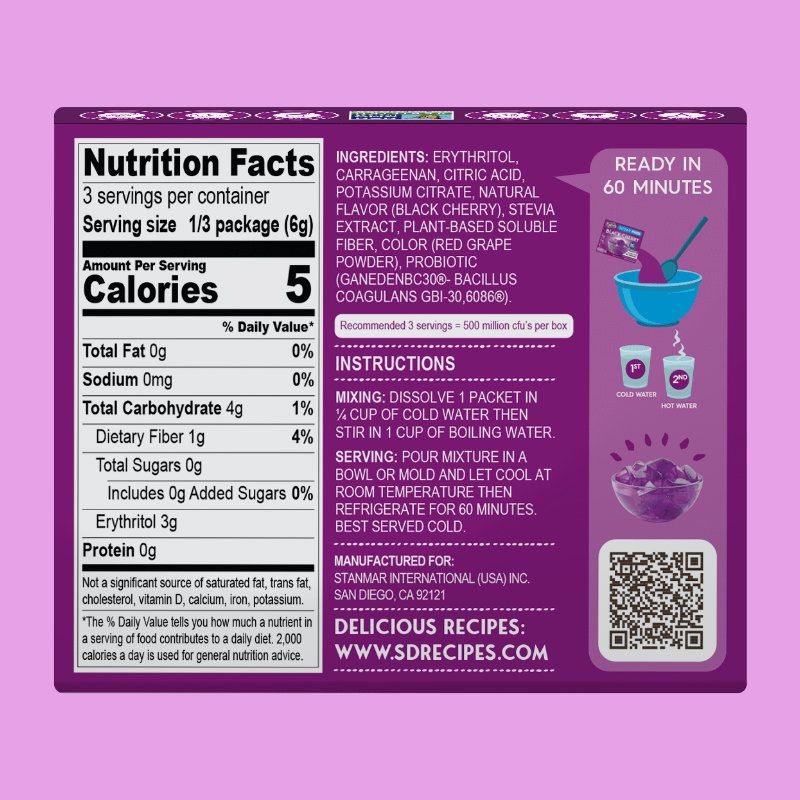 Enjoy the taste of sweet black cherry that you know and love so much with the added benefit of PROBIOTICS! Your tummy will love you for both that delicious cherry flavor and those good bacterias so you and your gut feel on top of the world. Don’t worry, we’ll do the cherry-picking, all you have to do is stir, set and enjoy!